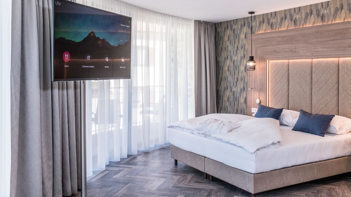 stilvoll. familiär. herzlich. – Zimmer und Suiten Natürliche, hochwertige Materialien und besondere Ausblicke auf die Bergwelt schaffen einen einzigartigen Rückzugsort. Unsere neuen lichtdurchfluteten Suiten überzeugen mit großen Panoramafenstern und teils mit eigener Sauna und Badewanne im Zimmer oder am Balkon.